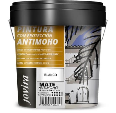 Pintura blanca mate con protección antimoho y resistencia a la humedad. Ideal para baños, cocinas y paredes con condensación. Fácil de aplicar y con acabado limpio y duradero.